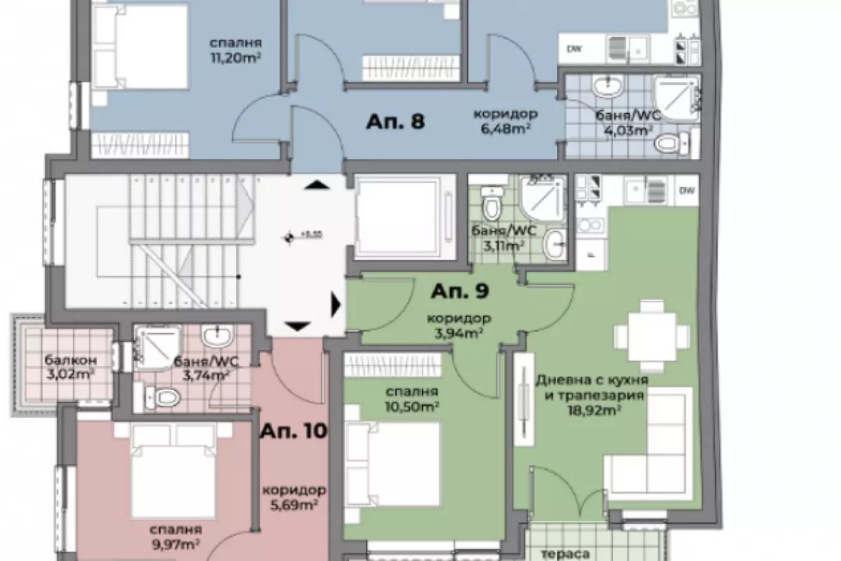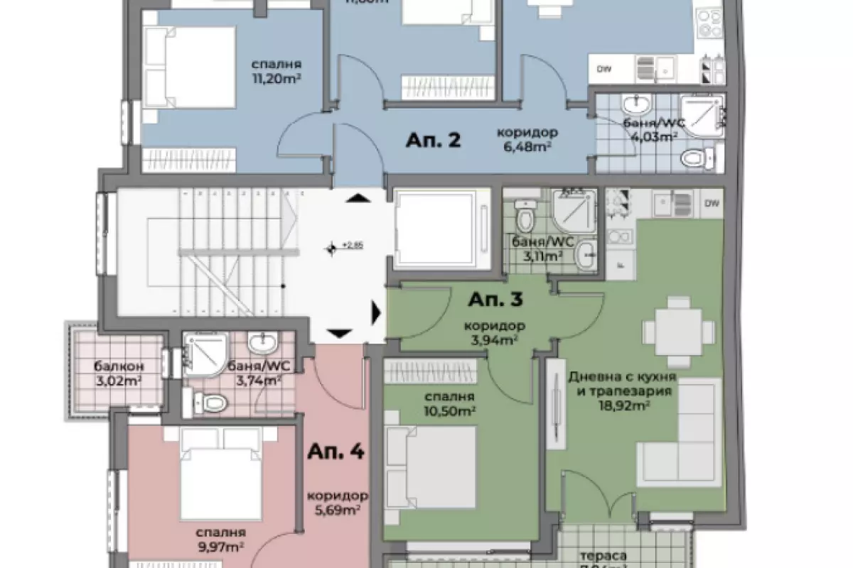 Двустаени апартаменти в нова бутикова сграда в централната част на Аспарухово