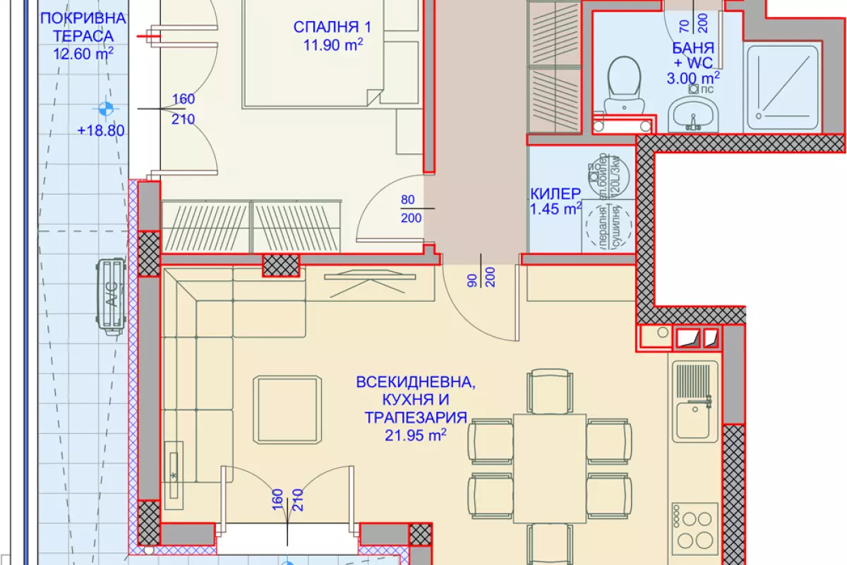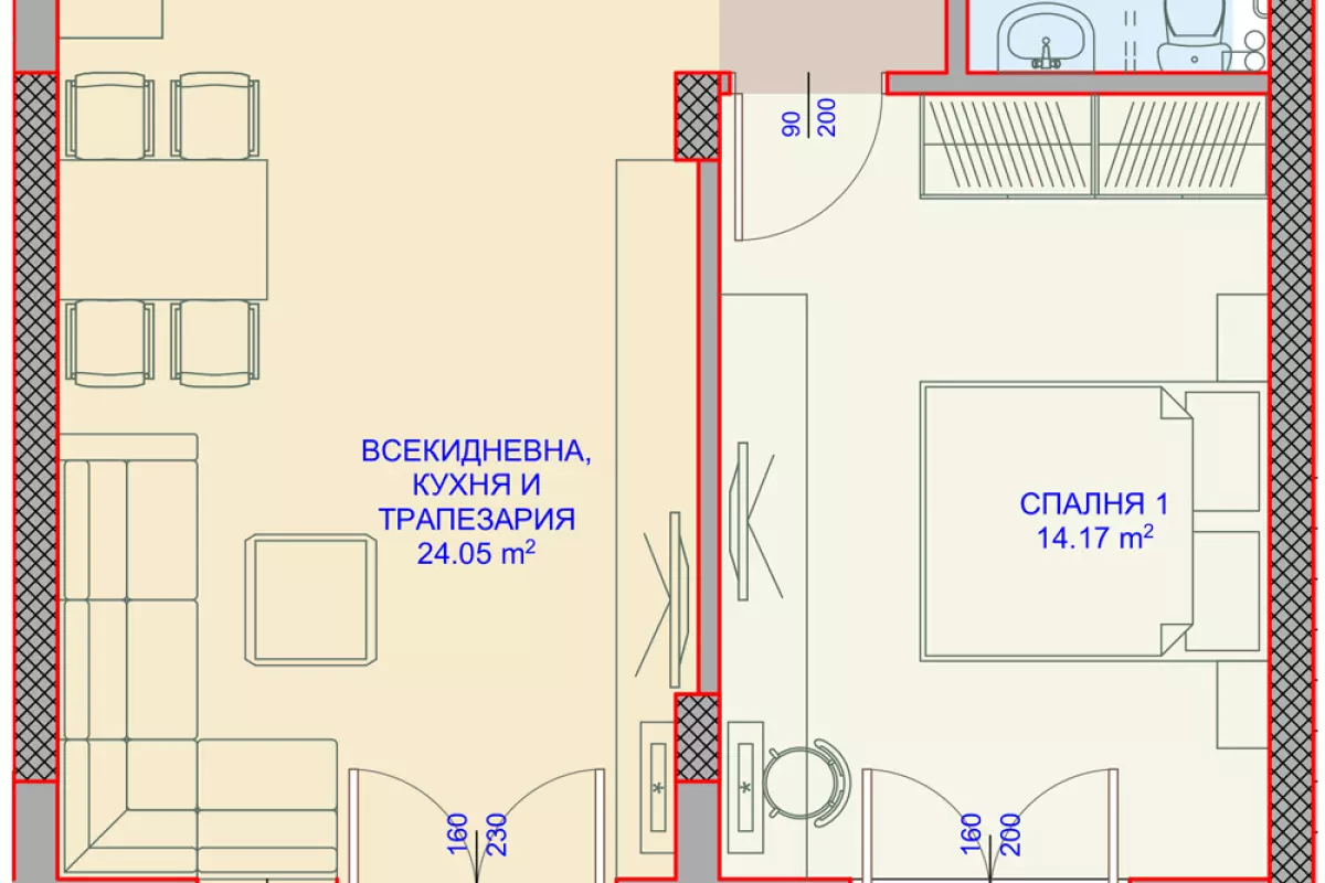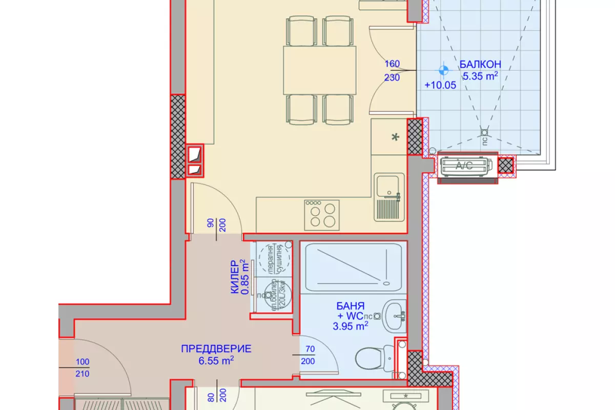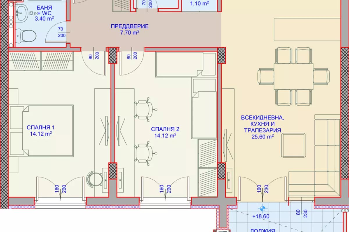 ЕКСКЛУЗИВНО ОТ АКЦЕНТ ИНВЕСТ - БЕЗ КОМИСИОННА ОТ КУПУВАЧА! Представяме Ви Двустаен апартамент (22), разположен на 4-ти жилищен етаж, с обща площ 70,55м2 (60,95м2 без...
