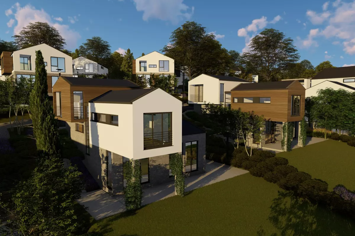 Нов, бутиков комплекс от къщи с панорамна гледка към града и морето в живописната м-т Зеленика.
