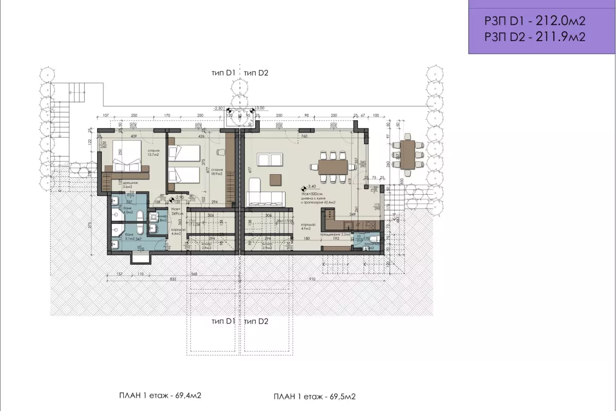 Акцент Инвест предлага на Вашето внимание нова къща с разгърната застроена площ от 100 кв.м и двор с обща площ от 487кв.м. Къща 1 – двуетажна. Двора е...