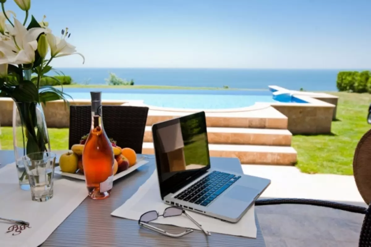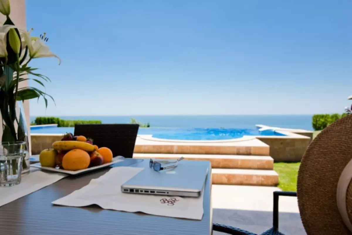 Четириетажна къща с басейн и прекрасна морска панорама в Траката