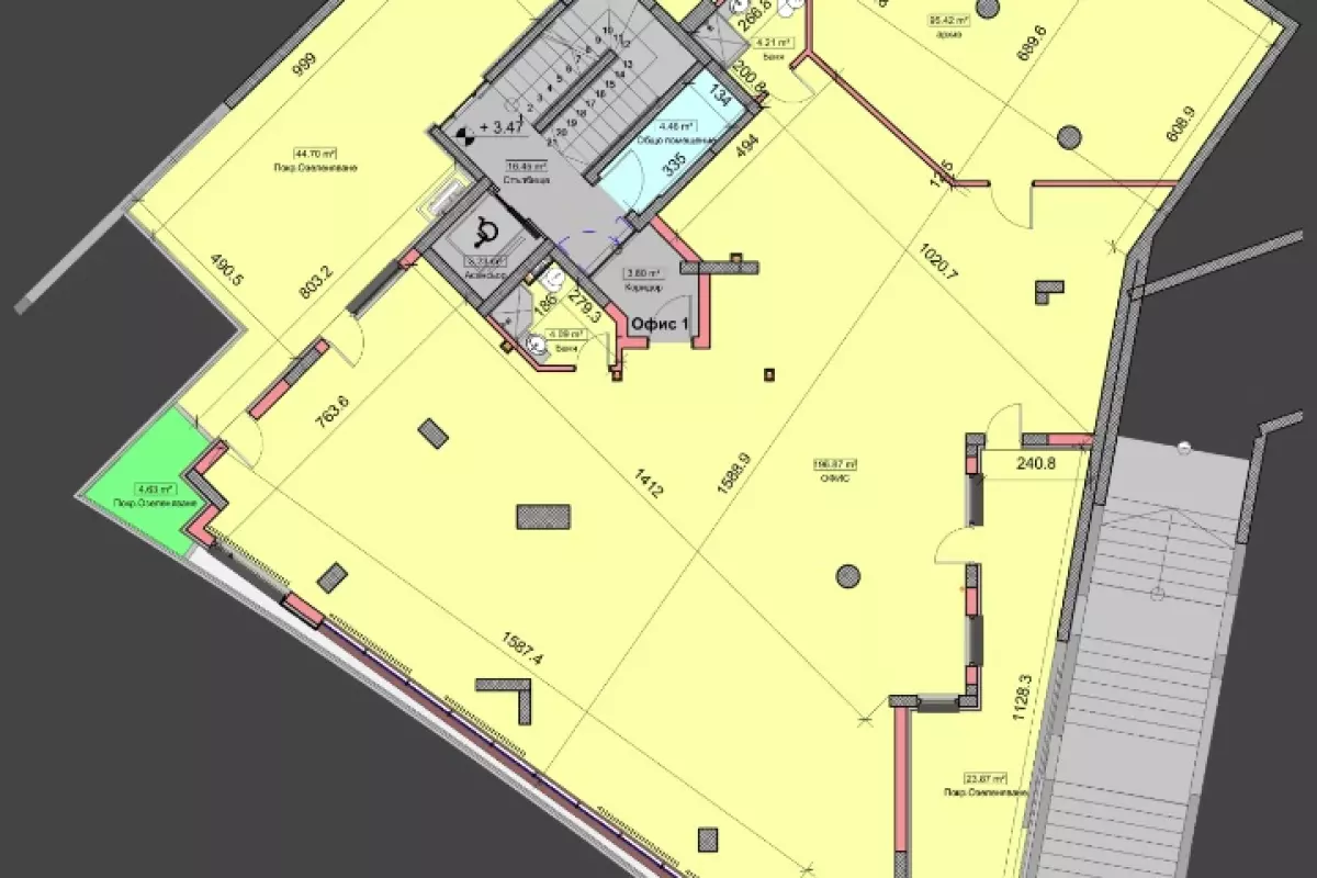 "Акцент Инвест" представя на Вашето внимание офис в нов, модерен жилищен комплекс в жк. "Бриз". Имотът се намира на 1-ви надпартерен етаж, с обща площ 437,03 кв.м....