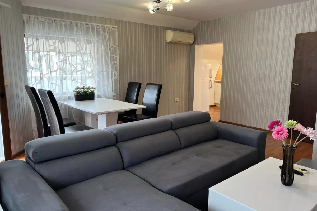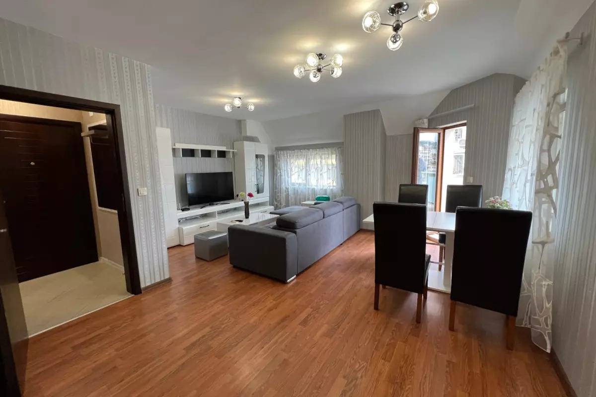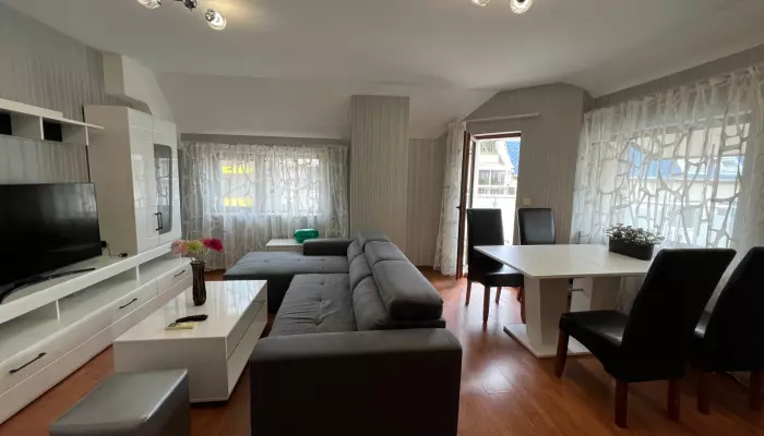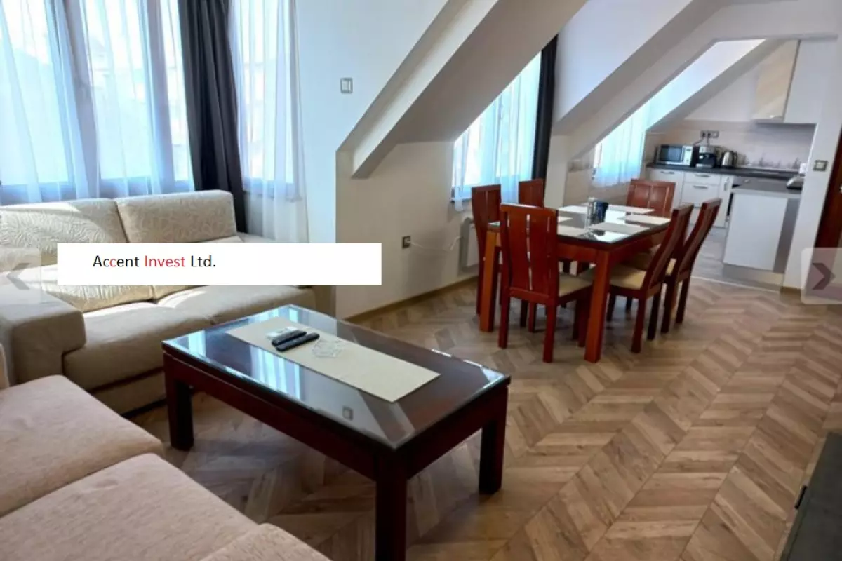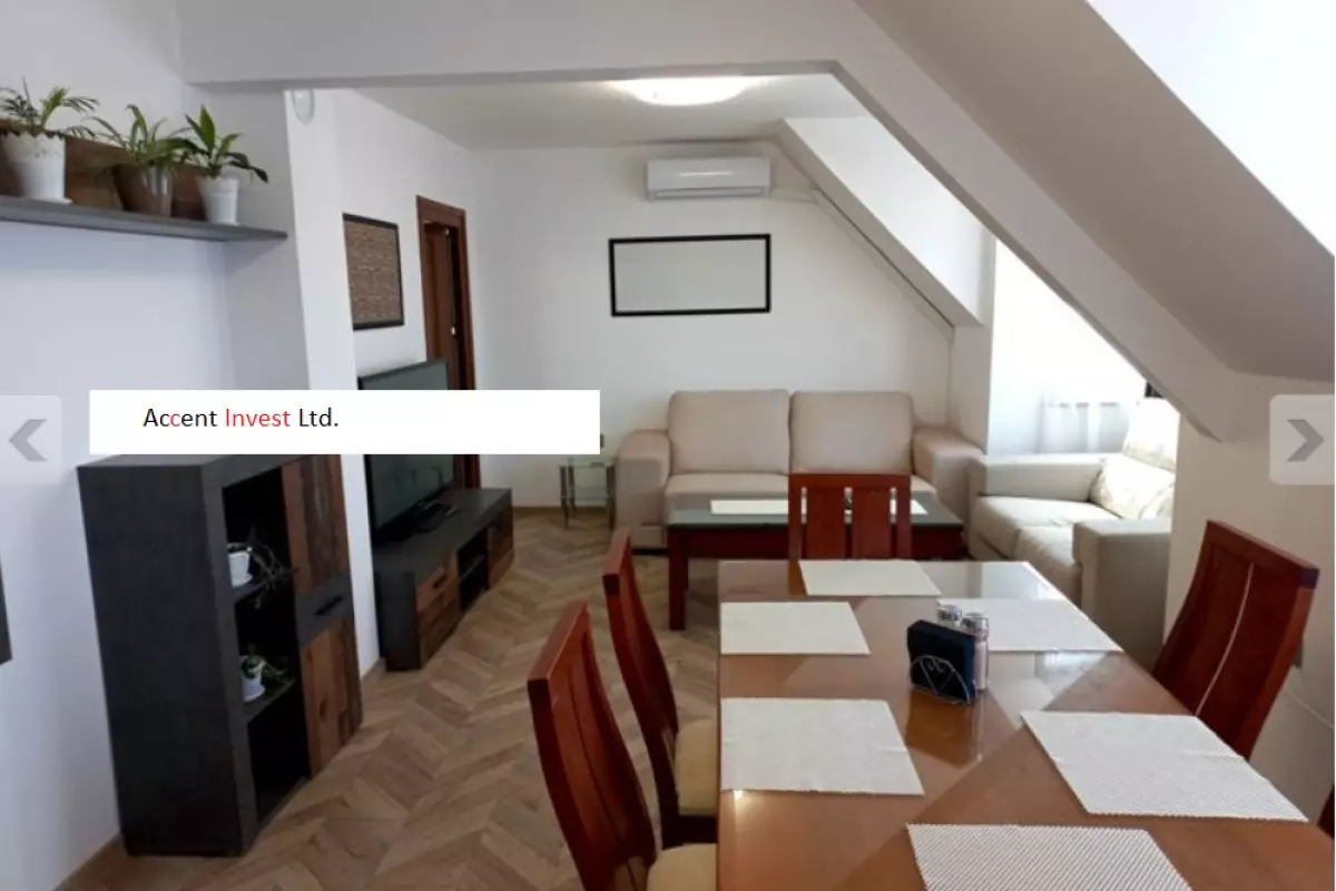"Акцент Инвест" Ви представя, тристаен, луксозно обзаведен апартамент под наем. Състои се от дневен тракт с кухня, две спални, баня с тоалетна, килер, коридор, голяма...