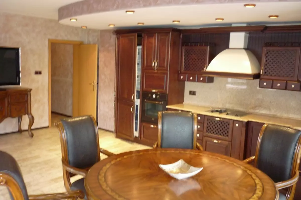 Новообзаведен тристаен апартамент, състоящ се от просторна дневна, разделена на кътове: за отдих/мека мебел, холна масичка/, трапезария/маса за хранене/, вградена кухня, оборудвана с бяла техника;...