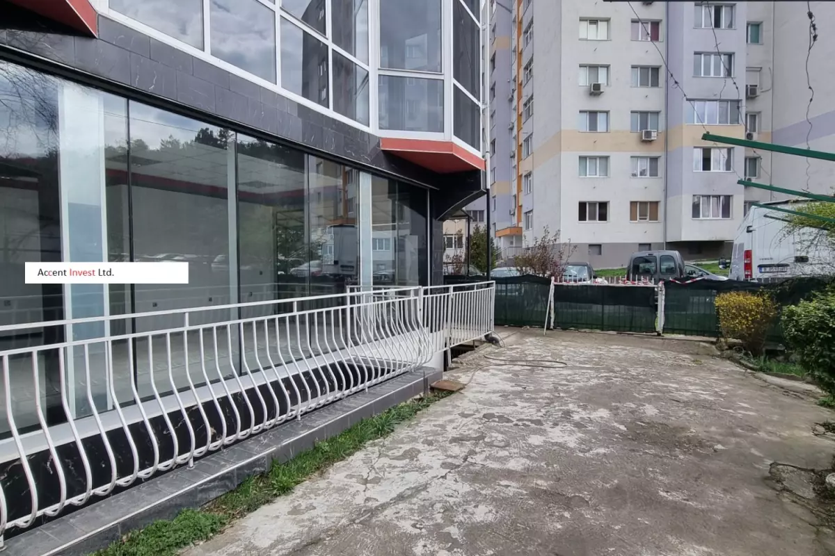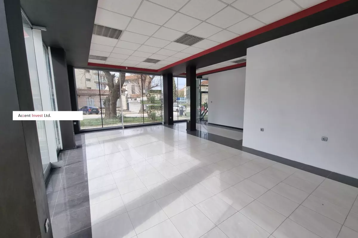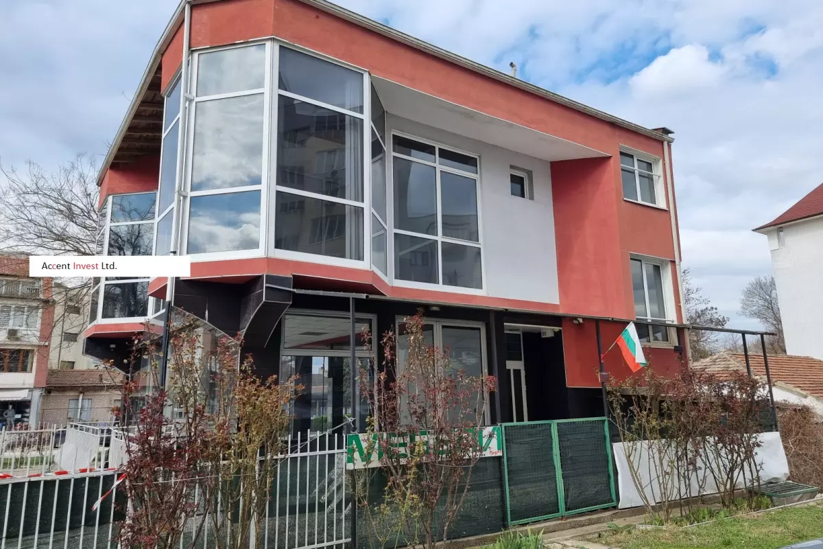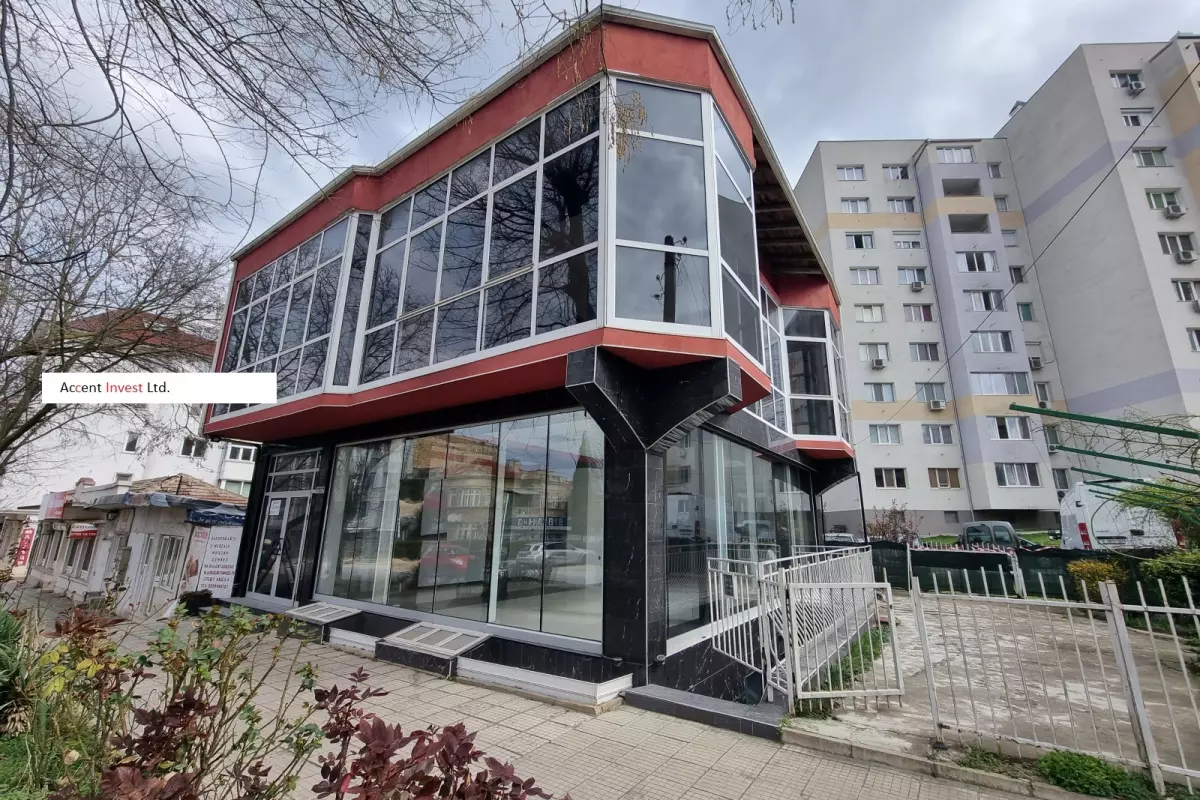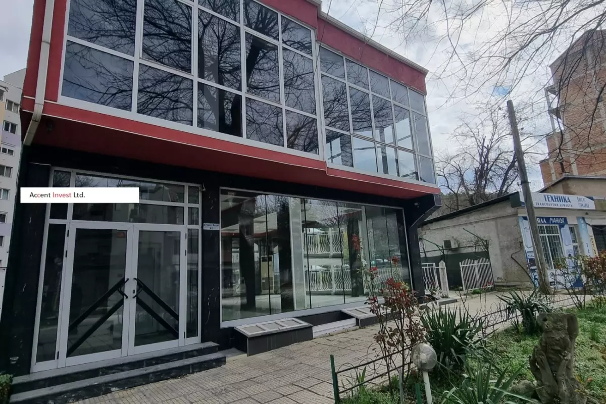 "Акцент Инвест" отдава под наем самостоятелна търговска сграда със закачлив дизайн, на два етажа. Прилежащ и добре поддържан двор от 100м2 към нея. Първи етаж...