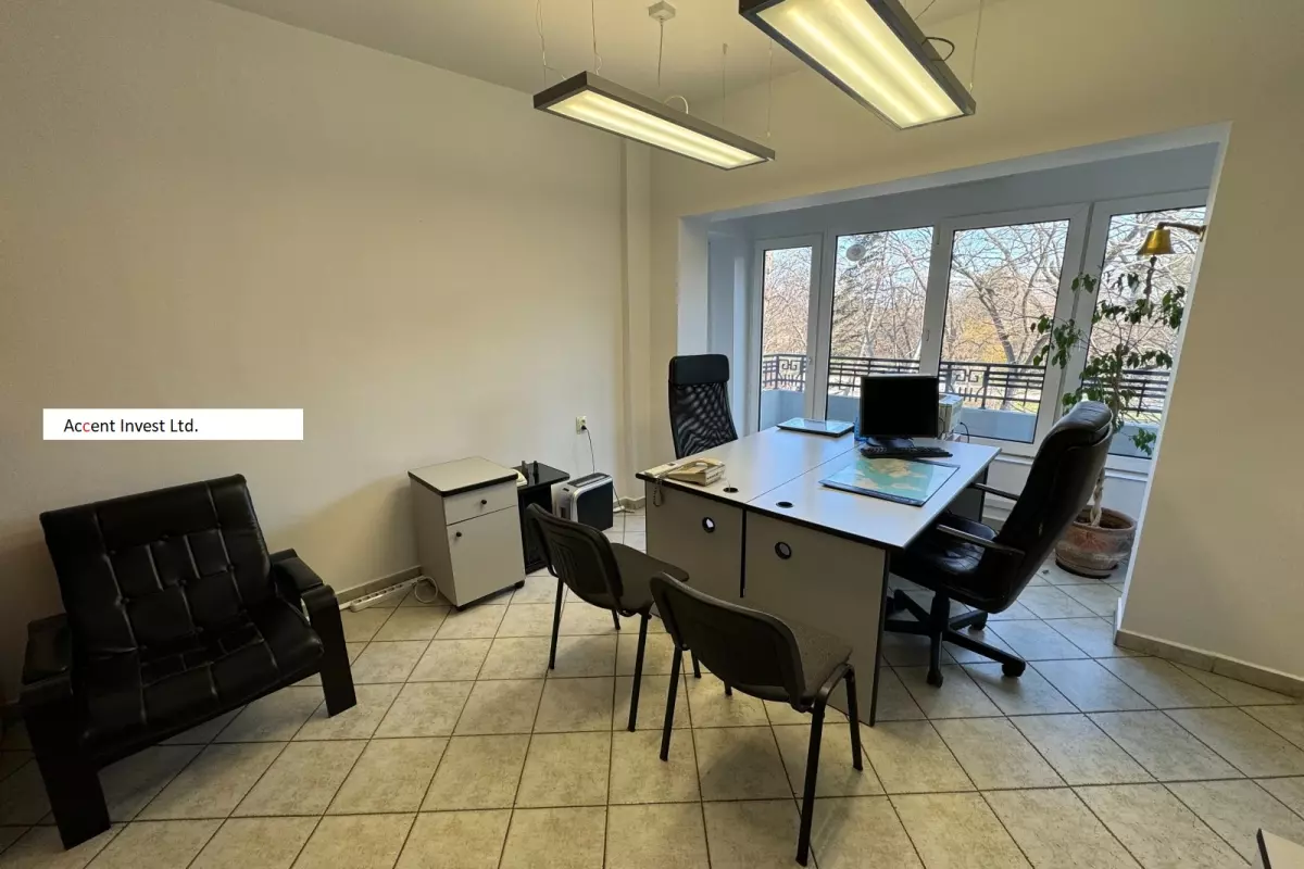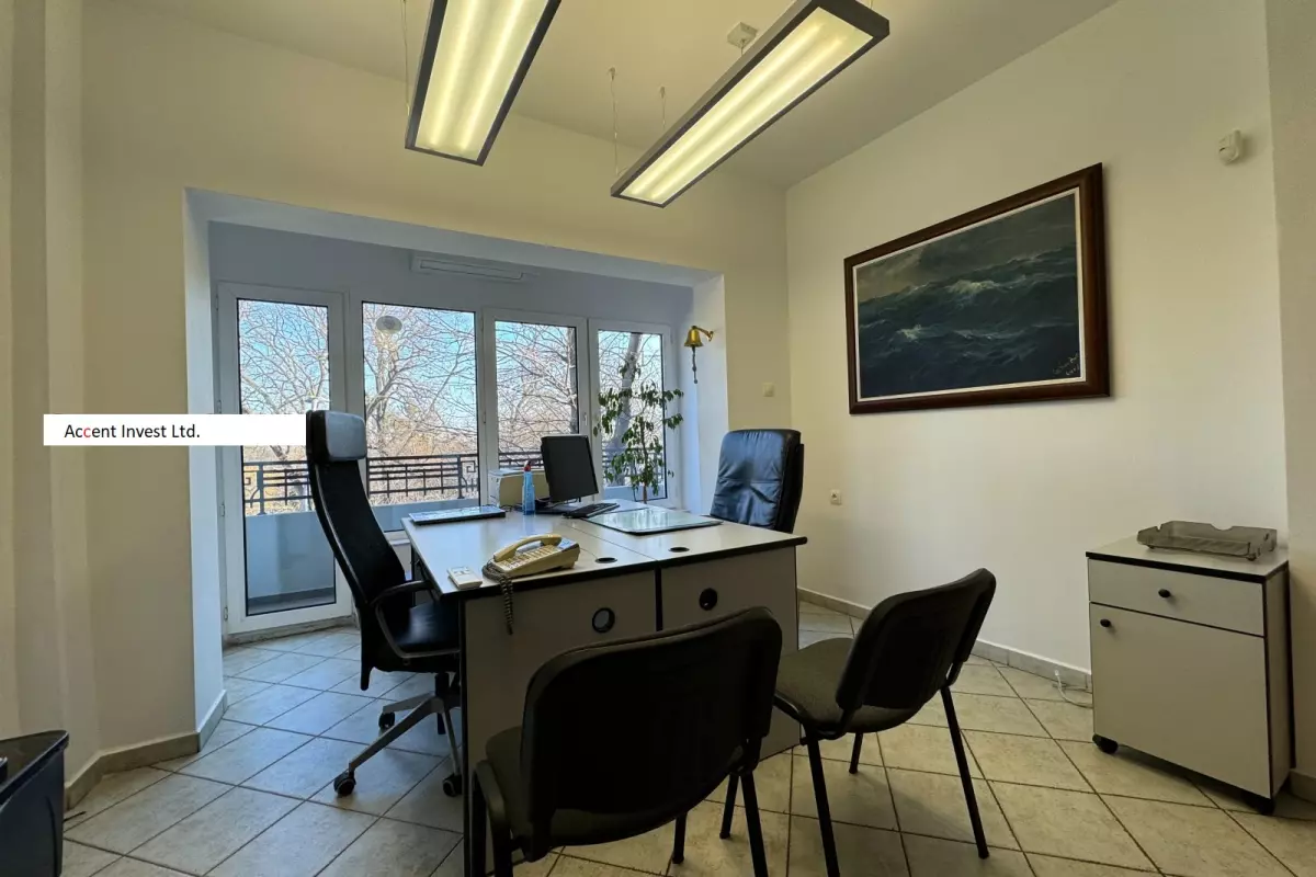 "Акцент Инвест" Ви предлага обзаведен офис под наем на бул. "Приморски". Имотът се състои от три стаи, които са с гледка към Морската Градина. Изложение...