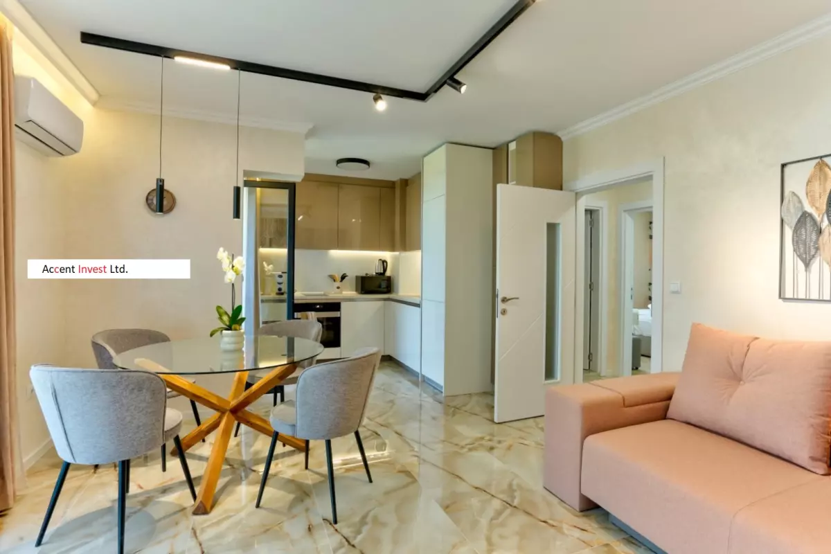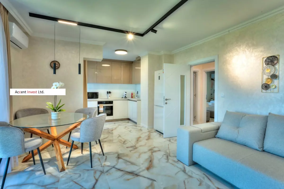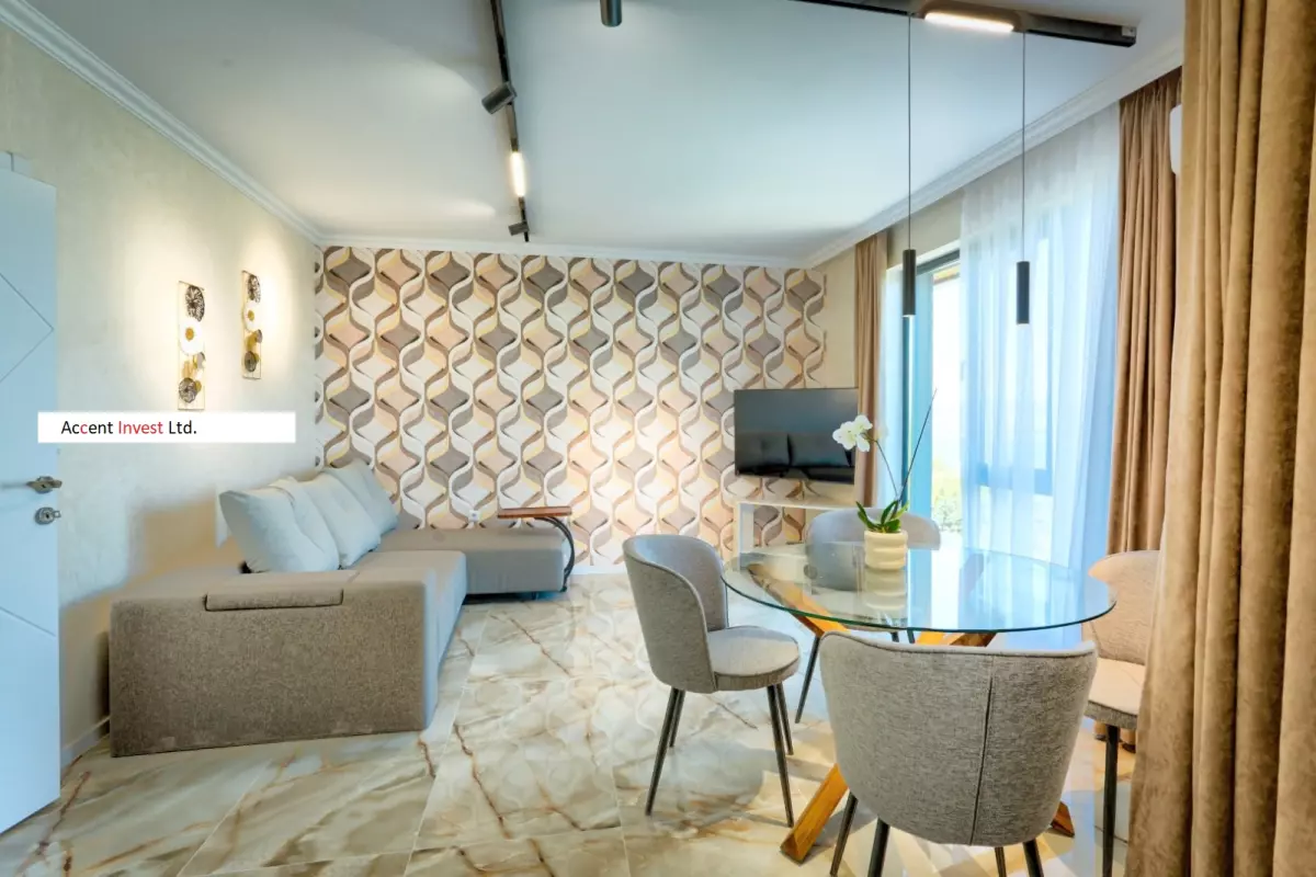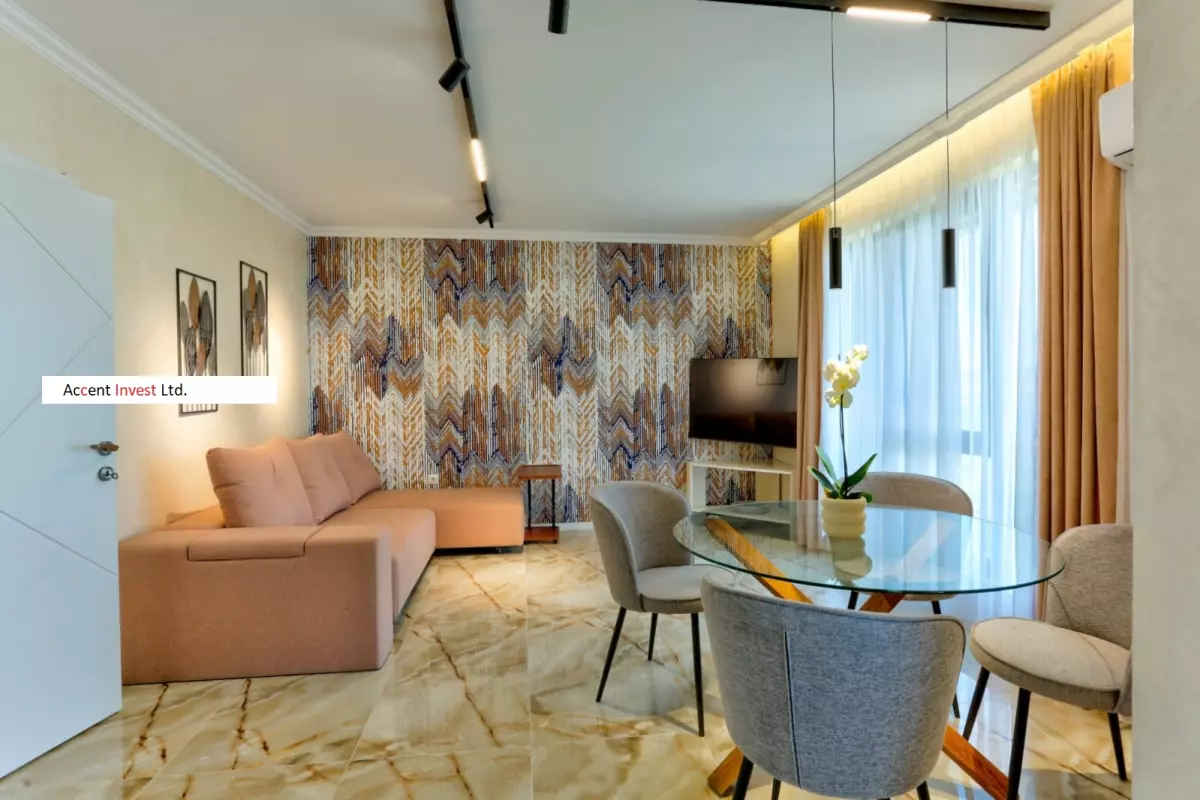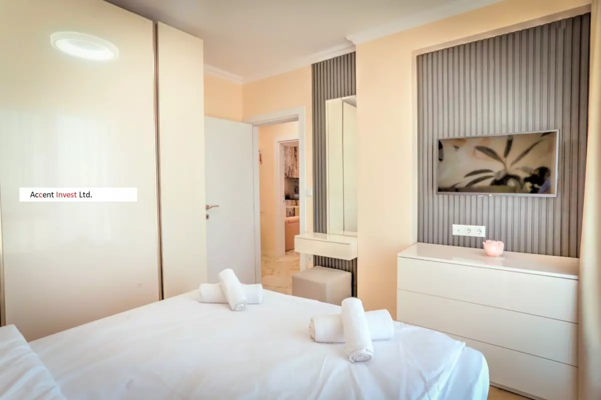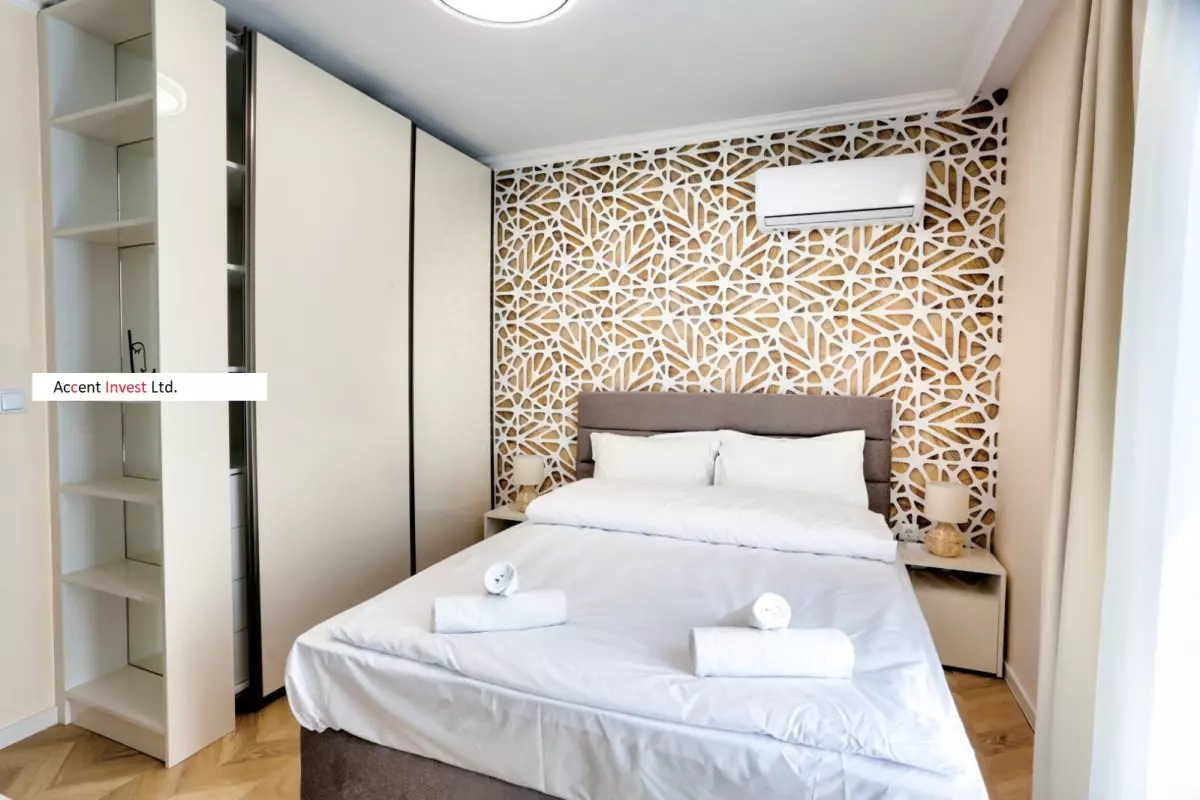 "Акцент Инвест" Ви предлага луксозно обзаведен дизйнерски апартамент под наем в чисто нов, затворен комплекс. Апартаментът се състои от просторна дневна, две самостоятелни спални, голяма...