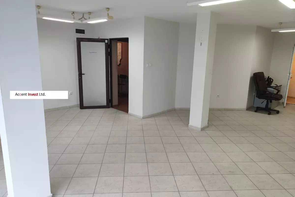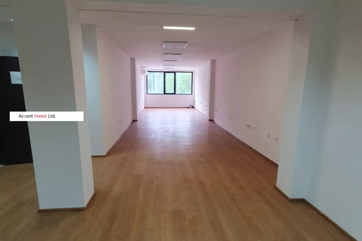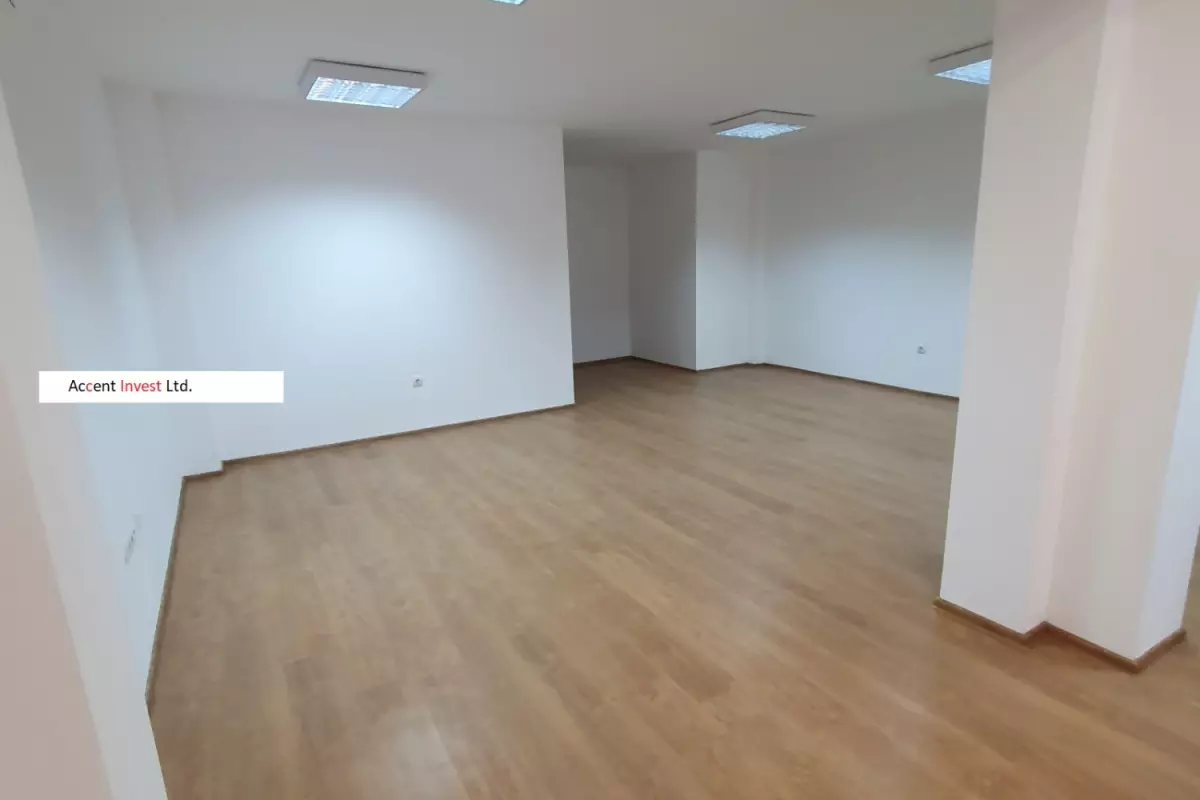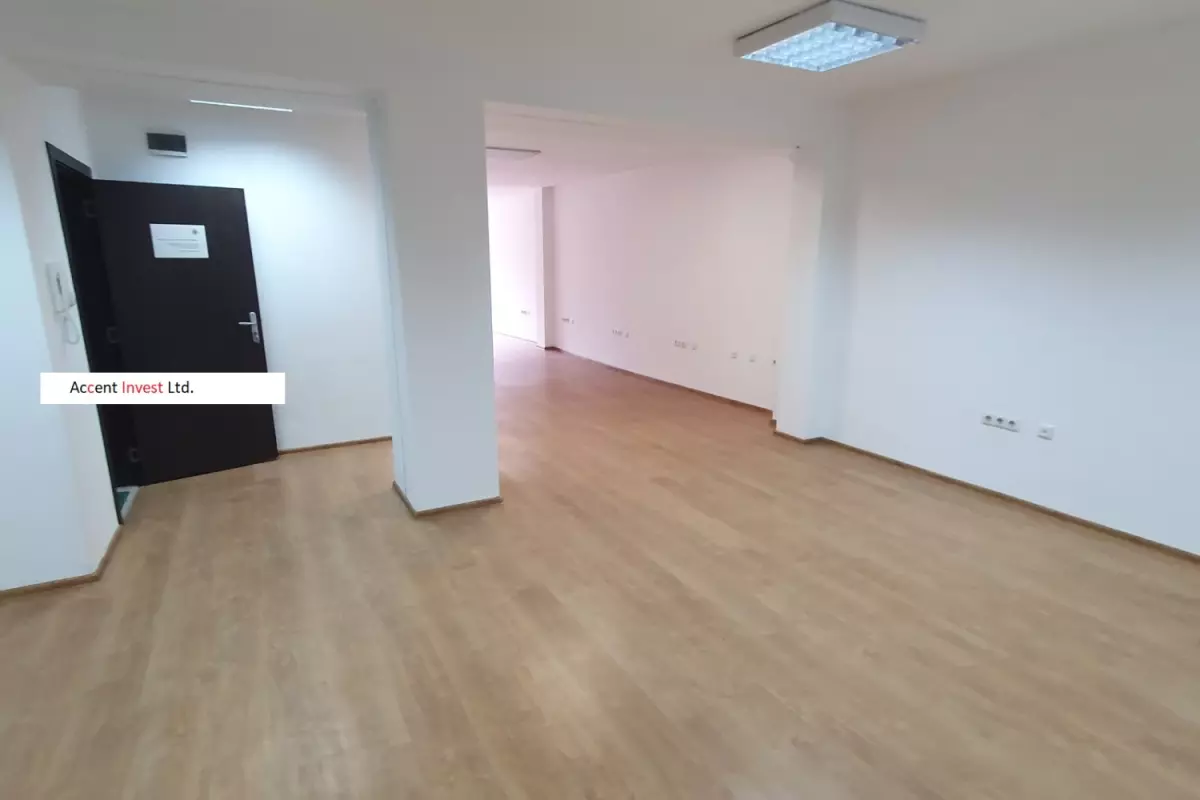 "Акцент Инвест" Ви предлага офис под наем, необзаведен, с площ от 56м2, на 1-ви етаж - с отделен вход от жилищната част на сградата (споделен...